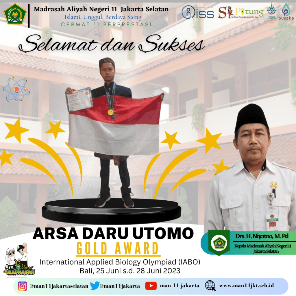 Siswa Madrasah Aliyah Negeri (MAN) 11 Jakarta Selatan berhasil mendapatkan penghargaan emas (Gold Award) dalam kompetisi International Applied Biology Olympiad (IABO) yang diadakan oleh Indonesia Scientific Society (ISS) di Bali 25 Juni sampai dengan 28 Juni 2023.