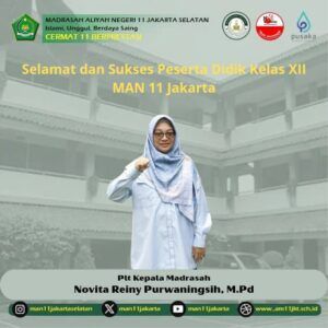 Bagi kalian yang lulus saya ucapkan Selamat atas keberhasilan perjuangan di MAN 11 Jakarta Selatan. Tentu semua itu tidak lepas dari perjuangan, dukungan dan do’a dari orang tua dan bapak ibu guru. Oleh karena itu berterima kasihlah kepada orang tua dan bapak ibu guru atas semuanya. Teruslah berdo’a mohon petunjuk, bimbingan, perlindungan dan takdir yang baik kepada Allah SWT agar kalian dapat melanjutkan ke jenjang pendidikan yang lebih tinggi. Makin tinggi pendidikan kalian nanti, hendaknya makin berbakti dan hormat kepada kedua orang tua dan bapak ibu guru.